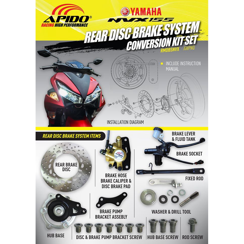 Yamaha Nvx Nvx155 Rear Disc Brake System Conversion Kit Set Modify Complete Set Apido Shopee Malaysia
